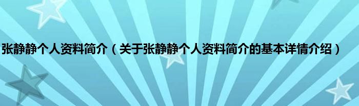 本文关于张静静个人资料简介的基本详情介绍就讲解完毕,希望对大家有所帮助。