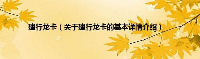 本文关于建行龙卡的基本详情介绍就讲解完毕,希望对大家有所帮助。