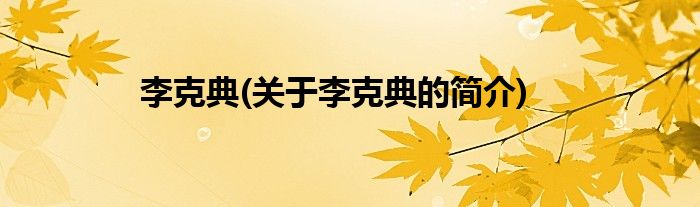 大家好,李克典,关于李克典的简介很多人还不知道,现在让我们一起来看看吧!