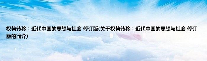 大家好,权势转移:近代中国的思想与社会 修订版,关于权势转移:近代中国的思想与社会 修订版的简介很多人还不知道,现在让我们一起来看看吧!