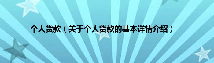 本文关于个人货款的基本详情介绍就讲解完毕,希望对大家有所帮助。