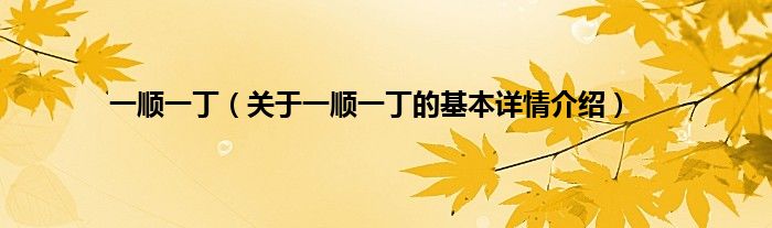 本文关于一顺一丁的基本详情介绍就讲解完毕,希望对大家有所帮助。