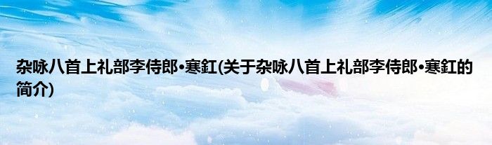 本文关于杂咏八首上礼部李侍郎·寒釭的简介就讲解完毕,希望对大家有所帮助。