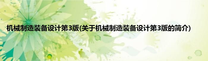 大家好,机械制造装备设计第3版,关于机械制造装备设计第3版的简介很多人还不知道,现在让我们一起来看看吧!