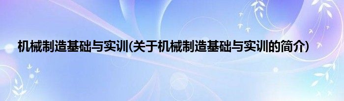 大家好,机械制造基础与实训,关于机械制造基础与实训的简介很多人还不知道,现在让我们一起来看看吧!