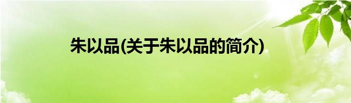 大家好,朱以品,关于朱以品的简介很多人还不知道,现在让我们一起来看看吧!