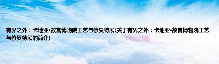 本文关于有界之外:卡地亚·故宫博物院工艺与修复特展的简介就讲解完毕,希望对大家有所帮助。