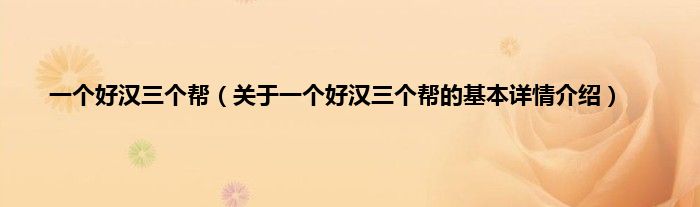 本文关于一个好汉三个帮的基本详情介绍就讲解完毕,希望对大家有所帮助。