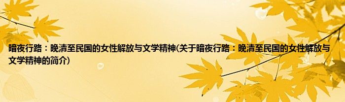 本文关于暗夜行路:晚清至民国的女性解放与文学精神的简介就讲解完毕,希望对大家有所帮助。