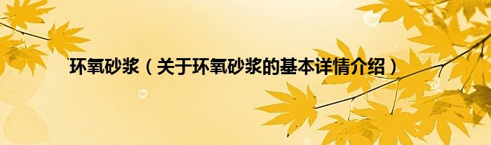 本文关于环氧砂浆的基本详情介绍就讲解完毕,希望对大家有所帮助。