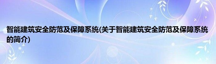大家好,智能建筑安全防范及保障系统,关于智能建筑安全防范及保障系统的简介很多人还不知道,现在让我们一起来看看吧!