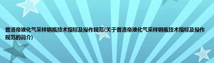 本文关于普洛帝液化气采样钢瓶技术指标及操作规范的简介就讲解完毕,希望对大家有所帮助。