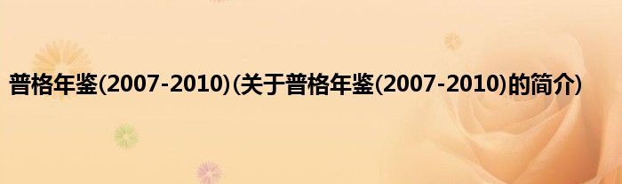 本文关于普格年鉴(2007-2010)的简介就讲解完毕,希望对大家有所帮助。