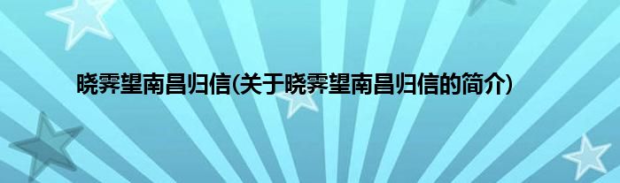 大家好,晓霁望南昌归信,关于晓霁望南昌归信的简介很多人还不知道,现在让我们一起来看看吧!