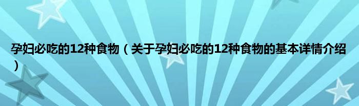 本文关于孕妇必吃的12种食物的基本详情介绍就讲解完毕,希望对大家有所帮助。