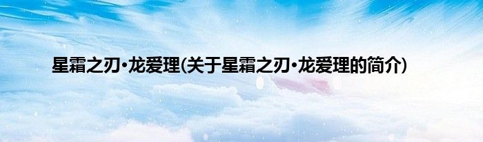 大家好,星霜之刃·龙爱理,关于星霜之刃·龙爱理的简介很多人还不知道,现在让我们一起来看看吧!