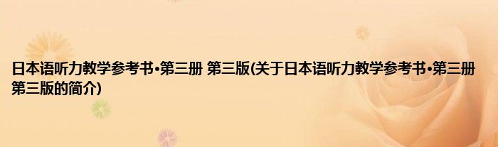 本文关于日本语听力教学参考书·第三册 第三版的简介就讲解完毕,希望对大家有所帮助。