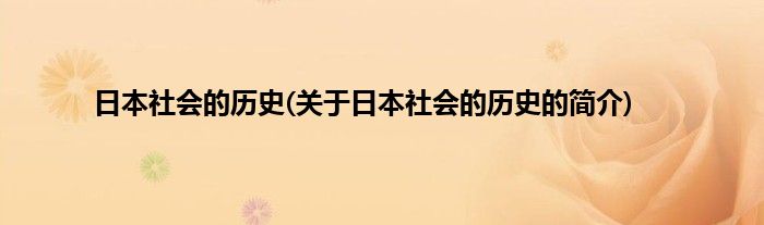 本文关于日本社会的历史的简介就讲解完毕,希望对大家有所帮助。
