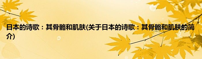 本文关于日本的诗歌:其骨骼和肌肤的简介就讲解完毕,希望对大家有所帮助。