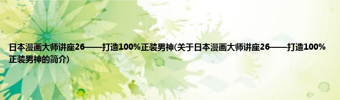 大家好,日本漫画大师讲座26——打造100%正装男神,关于日本漫画大师讲座26——打造100%正装男神的简介很多人还不知道,现在让我们一起来看看吧!