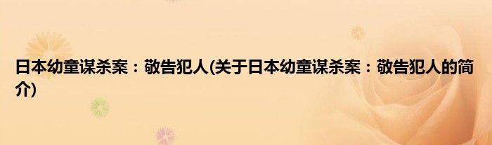本文关于日本幼童谋杀案:敬告犯人的简介就讲解完毕,希望对大家有所帮助。