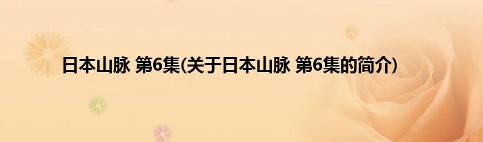 本文关于日本山脉 第6集的简介就讲解完毕,希望对大家有所帮助。