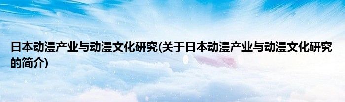 大家好,日本动漫产业与动漫文化研究,关于日本动漫产业与动漫文化研究的简介很多人还不知道,现在让我们一起来看看吧!
