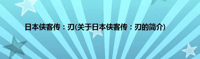 本文关于日本侠客传:刃的简介就讲解完毕,希望对大家有所帮助。