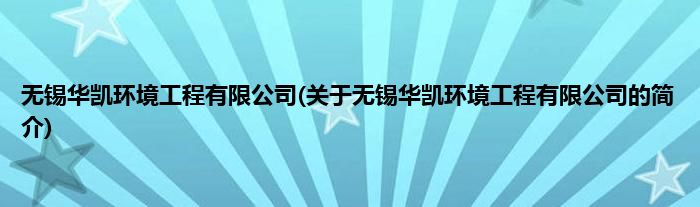 本文关于无锡华凯环境工程有限公司的简介就讲解完毕,希望对大家有所帮助。