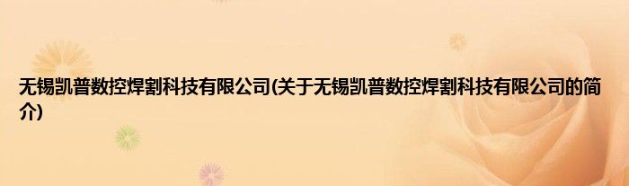 本文关于无锡凯普数控焊割科技有限公司的简介就讲解完毕,希望对大家有所帮助。