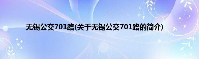 本文关于无锡公交701路的简介就讲解完毕,希望对大家有所帮助。