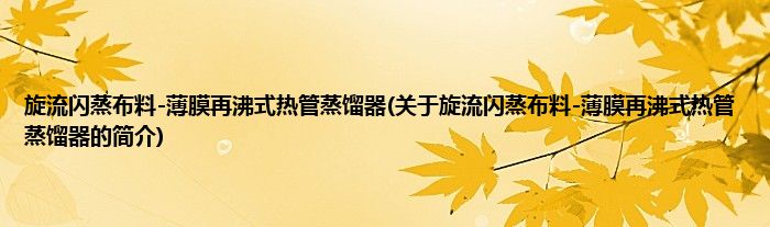 本文关于旋流闪蒸布料-薄膜再沸式热管蒸馏器的简介就讲解完毕,希望对大家有所帮助。