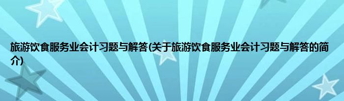 大家好,旅游饮食服务业会计习题与解答,关于旅游饮食服务业会计习题与解答的简介很多人还不知道,现在让我们一起来看看吧!