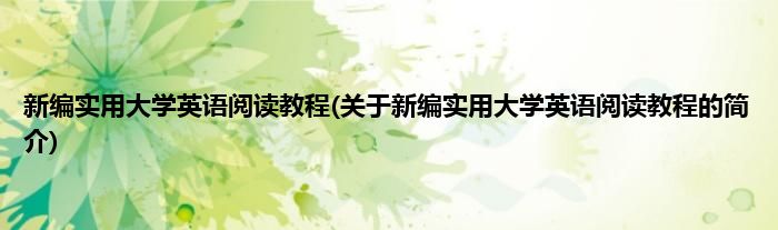 大家好,新编实用大学英语阅读教程,关于新编实用大学英语阅读教程的简介很多人还不知道,现在让我们一起来看看吧!