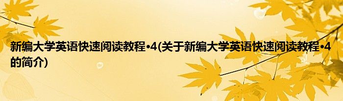 大家好,新编大学英语快速阅读教程·4,关于新编大学英语快速阅读教程·4的简介很多人还不知道,现在让我们一起来看看吧!