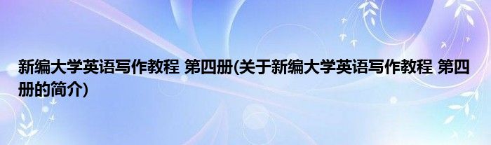 1、 《新编大学英语写作教程(第四册)》是2013年北京大学出版社出版的图书。