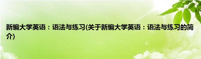 本文关于新编大学英语:语法与练习的简介就讲解完毕,希望对大家有所帮助。