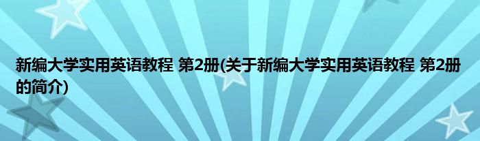 本文关于新编大学实用英语教程 第2册的简介就讲解完毕,希望对大家有所帮助。