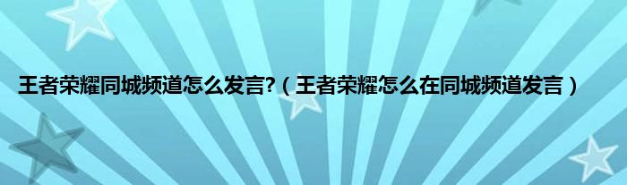 大家好,精选小编来为大家解答以上问题。王者荣耀同城频道怎么发言?,王者荣耀怎么在同城频道发言很多人还不知道,现在让我们一起来看看吧!