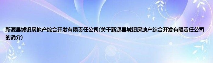 本文关于新源县城镇房地产综合开发有限责任公司的简介就讲解完毕,希望对大家有所帮助。