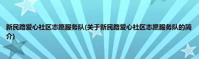 大家好,新民路爱心社区志愿服务队,关于新民路爱心社区志愿服务队的简介很多人还不知道,现在让我们一起来看看吧!