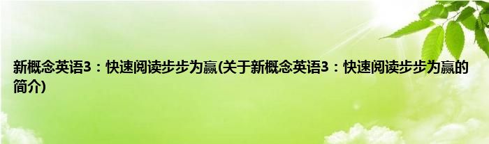 本文关于新概念英语3:快速阅读步步为赢的简介就讲解完毕,希望对大家有所帮助。