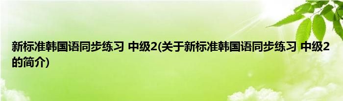 本文关于新标准韩国语同步练习 中级2的简介就讲解完毕,希望对大家有所帮助。