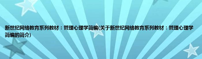 大家好,新世纪网络教育系列教材:管理心理学简编,关于新世纪网络教育系列教材:管理心理学简编的简介很多人还不知道,现在让我们一起来看看吧!