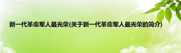 本文关于新一代革命军人最光荣的简介就讲解完毕,希望对大家有所帮助。