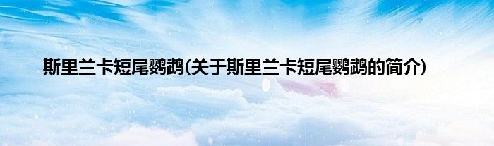 本文关于斯里兰卡短尾鹦鹉的简介就讲解完毕,希望对大家有所帮助。