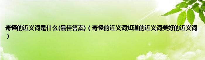 大家好,小常来为大家解答以上问题。奇怪的近义词是什么(最佳答案),奇怪的近义词知道的近义词美好的近义词很多人还不知道,现在让我们一起来看看吧!
