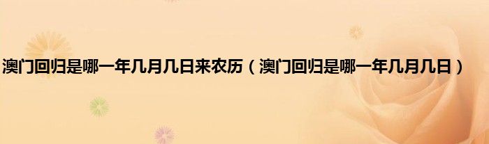 大家好,小常来为大家解答以上问题。澳门回归是哪一年几月几日来农历,澳门回归是哪一年几月几日很多人还不知道,现在让我们一起来看看吧!