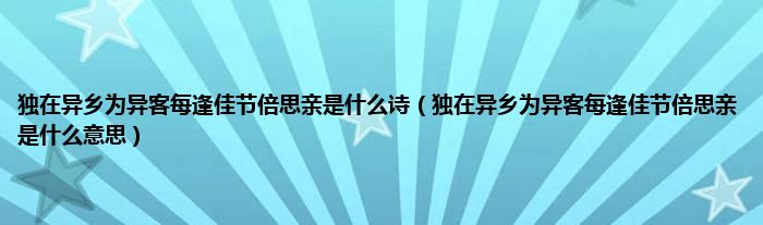 大家好,小常来为大家解答以上问题。独在异乡为异客每逢佳节倍思亲是什么诗,独在异乡为异客每逢佳节倍思亲是什么意思很多人还不知道,现在让我们一起来看看吧!
