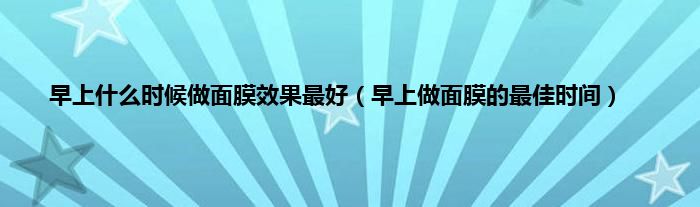 大家好,小科来为大家解答以上问题。早上什么时候做面膜效果最好,早上做面膜的最佳时间很多人还不知道,现在让我们一起来看看吧!